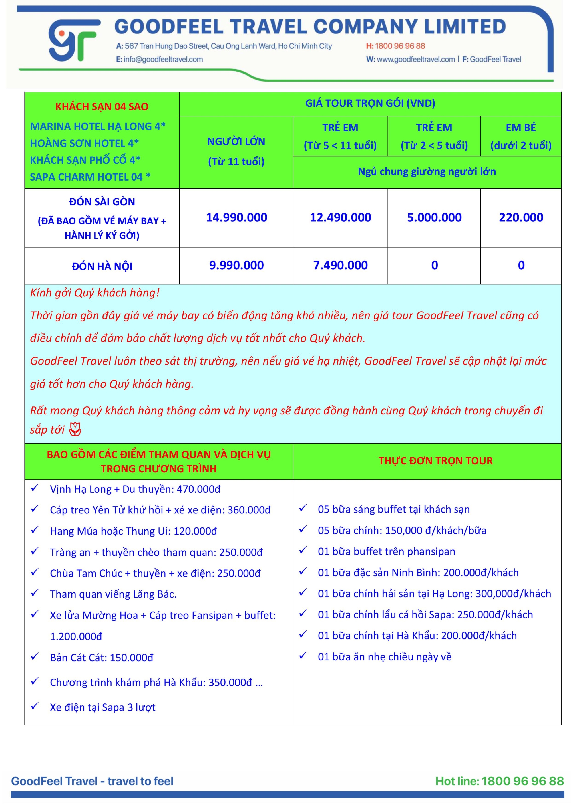 Tour du lịch Hạ Long - Ninh Bình - Hà Nội - Sapa - Hà Khẩu